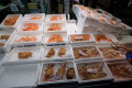 Bon, dans les 170 euros, c'est pas donné. Mais plein d'autres choses sont très abordables, et nous en avons profité. Ce crabe, nous le dégusterons plus tard, à Echizen. |  |  Le vendeur commence à nous connaître. |  |