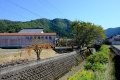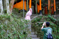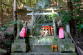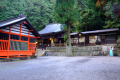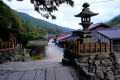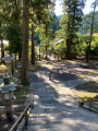 L'agglomération vient buter sur le contrefort montagneux et boisé. |  A sa lisière se trouve un vaste temple. |  |  Il s'agit d'Okamoto Shrine, dédié à la déesse du papier : Kawakami Gozen. |