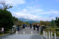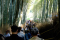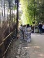 Il est situé en bordure de l'agglomération, au pied des Montagnes de l'Ouest. |  Lundi matin, nous sommes en forme pour faire les touristes. Pour rejoindre la partie centrale d'Arashiyama, on passe d'abord un petit pont, |  Puis le grand pont qui franchit la rivière Katsura. On est tout proche de deux lieux incontournables de Kyoto, le temple Tenryü-ji et la bambouseraie. |  La bambouseraie, des petits chemins dans une vaste forêt de bambous. C'est beau, sauf que, il y a au moins autant de touristes que de bambous... |