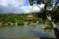 A 17h30, on sort des galeries et on s'étonne qu'il fasse déjà nuit. |  |  La journée de mardi est consacrée aux temples. Nous commençons par le plus réputé, le plus fréquenté, Kinkaku-ji, au nord-ouest de Kyoto. |  Il porte bien son nom, Pavillon d'Or. |