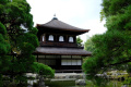 Là aussi, c'est la foule. |  |  Heureusement on trouve des points de vue sans têtes devant (parfois il faut jouer des coudes). |  Second temple, au nord-est de la ville :Jinkaku-ji. Appelé aussi Pavillon d'Argent, bien que plutôt en bois, il est très vieux (1482). |