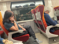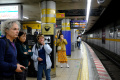 Jeudi 16 octobre au matin, nous prenons le train à la minuscule gare de Narai, pour rejoindre Takayama. |  D'abord un train local, puis un bus pour nous amener à Takayama, au cœur des montagnes de Hida dans les Alpes Japonaises. A propos des voyages (de 1 à 4 heures), nous prenions en général des trains, parfois un bus. |  Petites lignes style autorail, petites gares, grandes lignes, Shinkansen, gares énormes où il faut quasiment le GPS pour s'orienter. |  Ici, train de banlieue à Kyoto, au soir d'une journée de visites. |