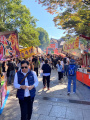 C'est ici que commence notre voyage au Japon, préparé depuis des mois ; départ le 11 octobre 2025 pour Sylvette, Colette, Christine, Vincent et André. |  Idée de base : en 3 semaines, traverser d'est en ouest (environ 300 kilomètres) l'île principale Honshu, en découvrant les paysages et les cités des Alpes Japonaises, arriver sur la côte ouest face à la Mer du Japon, pour finir à Kyoto, découverte pour certains, redécouverte pour d'autres. |  Pour commencer, direction Narai, village préservé sur le chemin de Nakasendo. Cette route reliait, à l'ère Edo (1600-1868), la capitale impériale Kyoto à Edo (ancien nom de Tokyo), centre du pouvoir politique et économique. |  Narai étire en fond de vallée, sur un bon kilomètre, sa rue unique. Elle était une des villes-étapes de cette importante route, proposant hébergements, magasins, ravitaillement, écuries, temples, aux fonctionnaires, soldats, marchands, qui la parcouraient. |