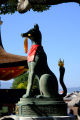 |  Jeudi 30, c'est notre dernier jour sur place, nous le consacrons à la visite du site de Fushimi-Inari. |  Fushimi-Inari est un sanctuaire datant du VIIIème siècle, dédié à Inari, divinité des récoltes. Son emblème est un renard qui porte dans sa gueule la clé des greniers à riz. |  Le sanctuaire s'étale sur plusieurs kilomètres de sentiers qui grimpent sur le flanc d'une colline boisée, au sud de la ville. |