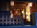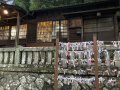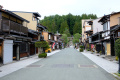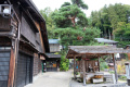 Les bâtiments ont été bien conservés ; les magasins ont d'épais murs en torchis, blanc ; les maisons sont toutes en bois. Nous avons logé dans l'une d'entre elles. |  C'était ici. Comme toutes les maisons où nous avons séjourné, les extérieurs sont d'époque, mais les intérieurs ont tout le confort moderne, même très moderne. |  |  Plusieurs petits temples sont répartis le long de la route. |