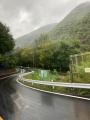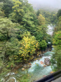 |  Lendemain, lundi 20 octobre, 2 heures de train avec un changement de ligne, pour rejoindre Kanazawa. |  La voie ferrée suit des fonds de vallée, chaque bout de terrain est occupé : riz, légumes, arbres fruitiers. |  Peu à peu on sort des montagnes. Et on finit par arriver à la grande gare de Kanazawa. |