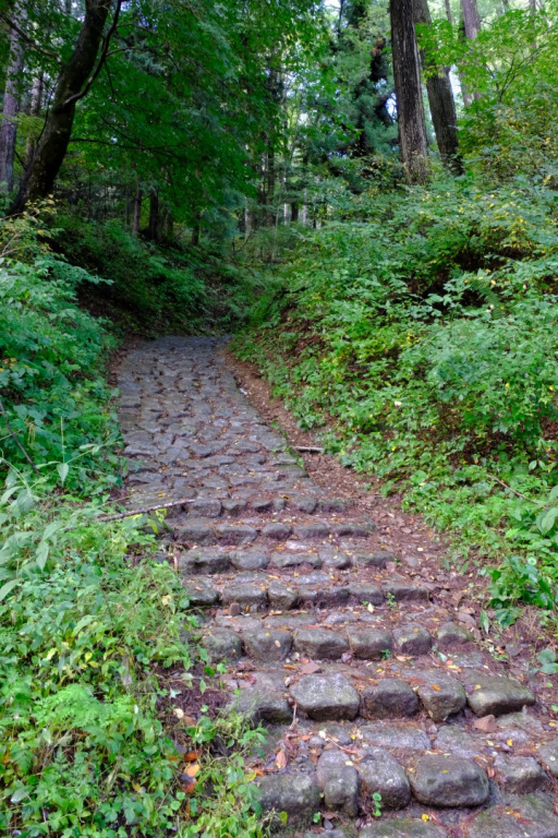 A la sortie de Narai, début d'un tronçon intact du chemin, tel qu'il était il y a 400 ans. Nous le parcourons jusqu'à son point culminant, le col de Torii-toge, 1197 m.