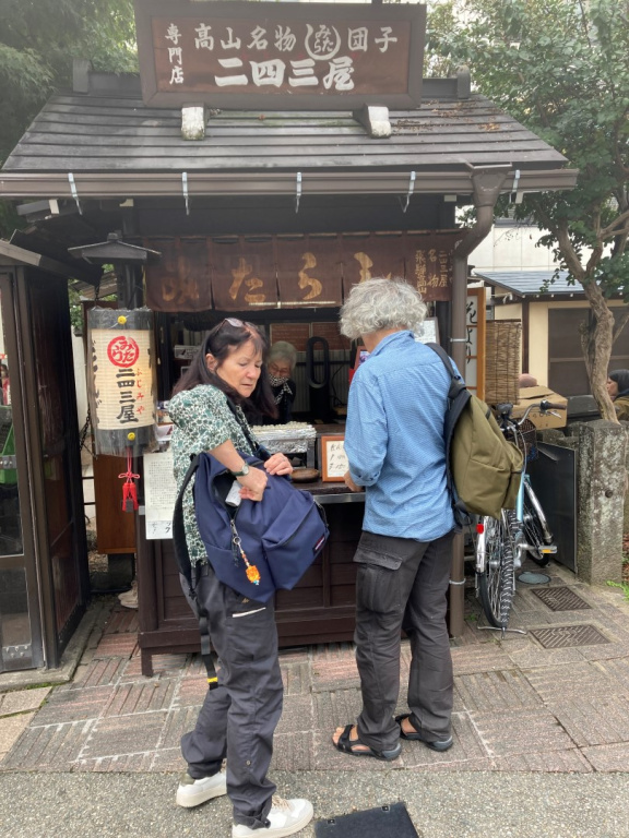 Dans les rues, des kiosques permettent d'apaiser une petite faim. Ici, on vend des dango, brochettes de boulettes de farine de riz gluant.