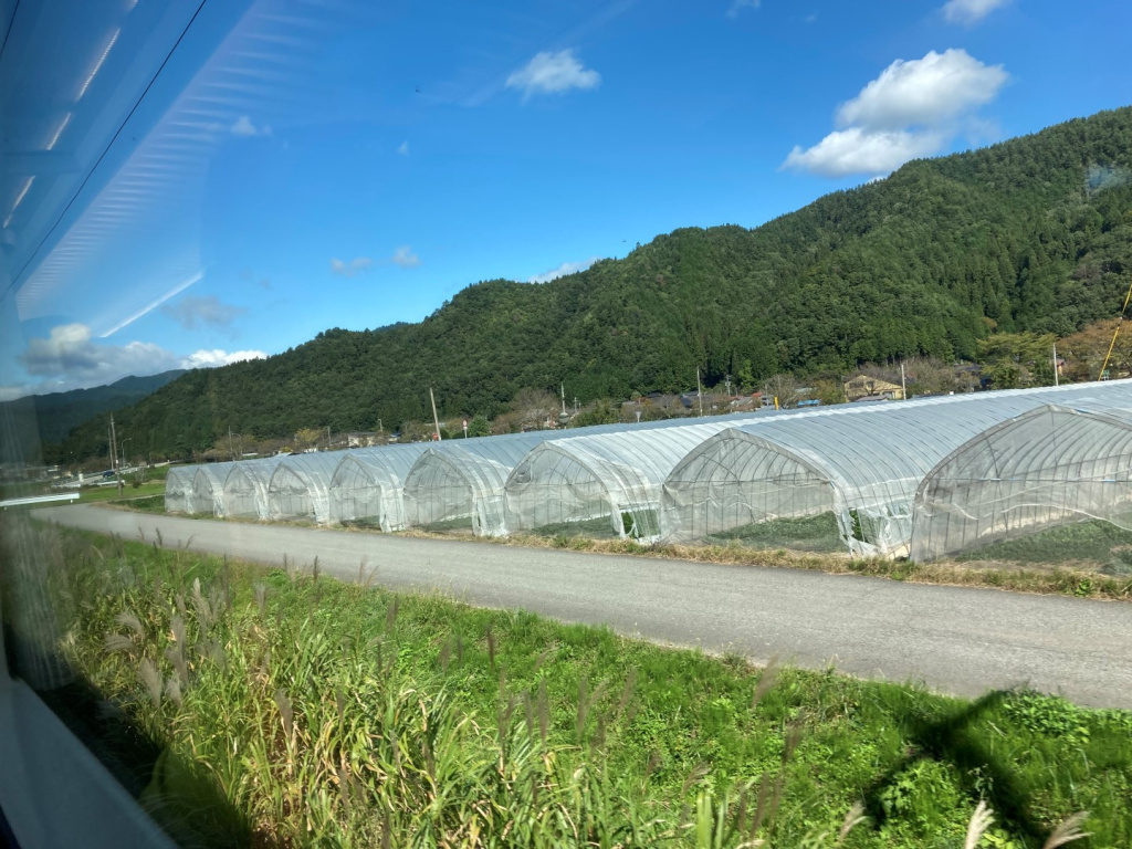 La voie ferrée suit des fonds de vallée, chaque bout de terrain est occupé : riz, légumes, arbres fruitiers.