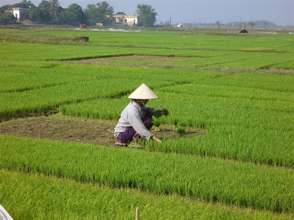 Pépinière de riz ; suivant la région, il peut y avoir 3 récoltes dans l'année.