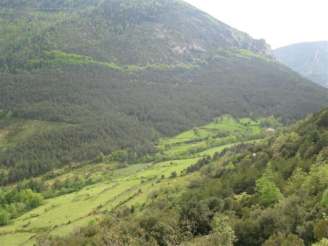 La vallée d'Aigue-Bonnes ; notre gite est tout dans le fond, la petite tache blanche vers la droite.