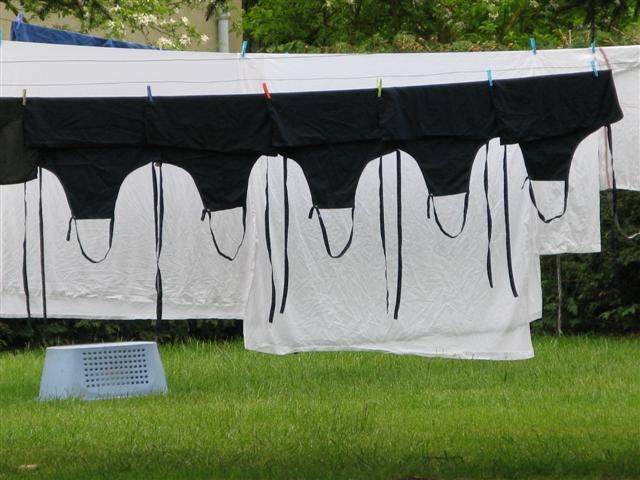 Le matin, les tabliers de Louis qui sèchent au soleil.