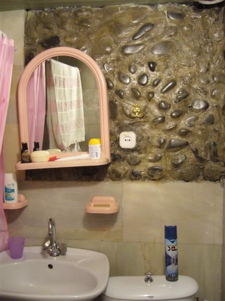 Même les décorations dans les chambres et salles de bains ; dans notre Bed and Breakfast à Samarkande, un merveilleux décor fait de galets vernis.