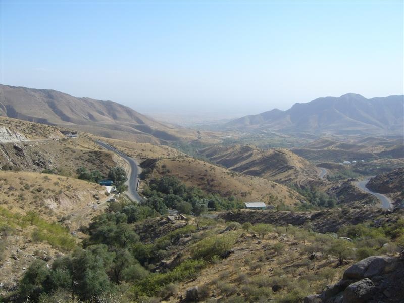 Une route grimpe vers un col, à 1700 m. Route interdite aux bus (reste d'administration soviétique ?), et par conséquent notre mini-bus est aussi interdit. Nous nous entassons à 6 plus nos sacs dans un "Damas", sorte de Fiat Panda surélevée !