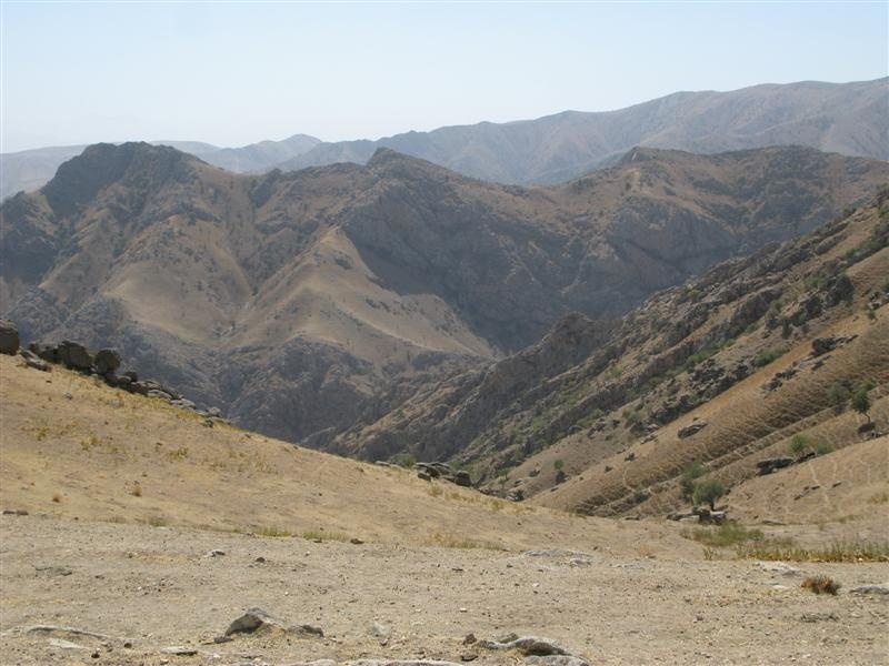 Vue sur les montagnes du Zerafshan. C'était un refuge de résistants, du temps de l'occupation russe.