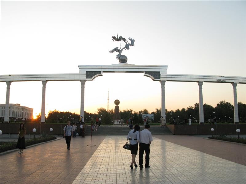 La Place de l'Indépendance, avec l'oiseau mythique qu'on trouvait déjà sur certaines medersa du 15ème siècle.