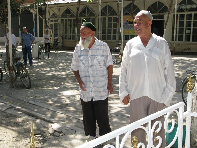 Dans la Fergana, deux pratiquants rejoignent la mosquée du vendredi pour la prière.