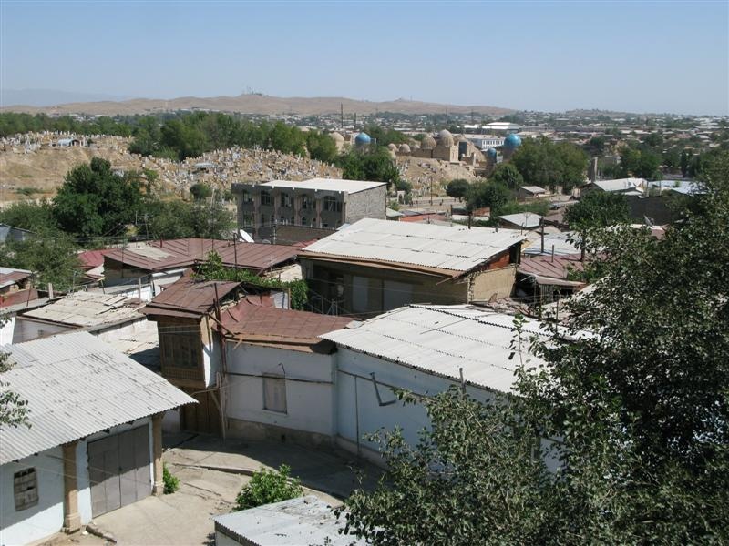 Justement, on arrive à Samarkande, une des villes de mes rêves. De loin, par dessus les faubourgs, on aperçoit les fameuses coupoles bleues.