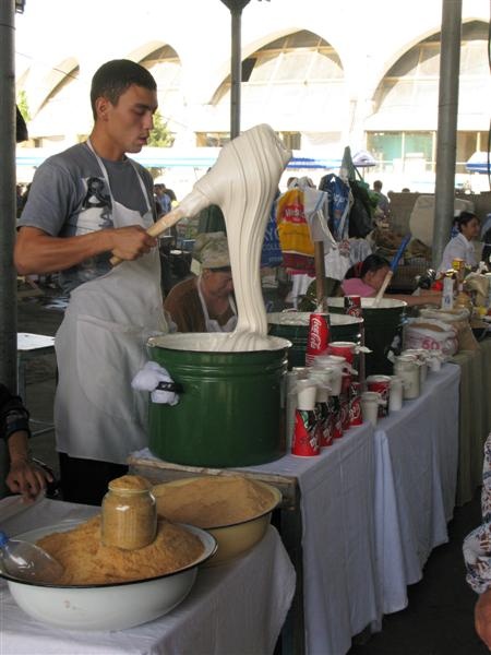 Partout, les gens achètent cette pâte, qu'on a goûté : une espèce de meringue bien sucrée. On nous a expliqué qu'il s'agit d'une friandise spéciale pour la période du ramadan.