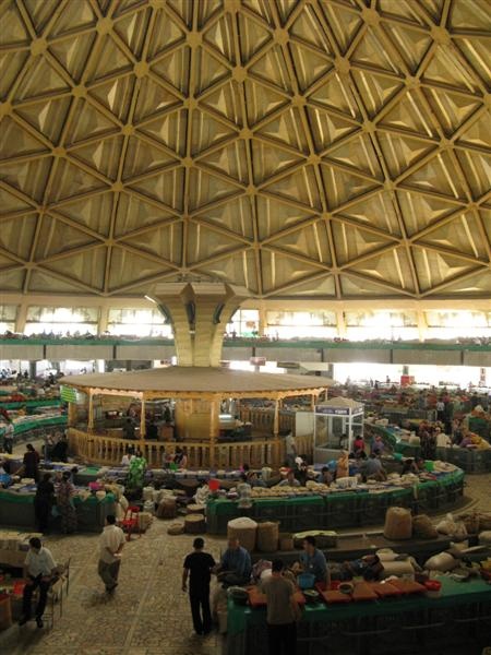 Autre marché, une vaste coupole en béton du temps soviétique, dans le vieux Tachkent : Chorzu bazar.