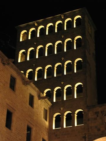 Vue de nuit de l'ancien palais des comtes de Barcelone. Moyen-âge également.