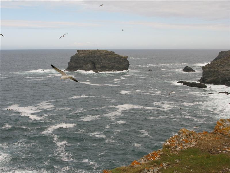 La côte est parsemée d'îlots rocheux.