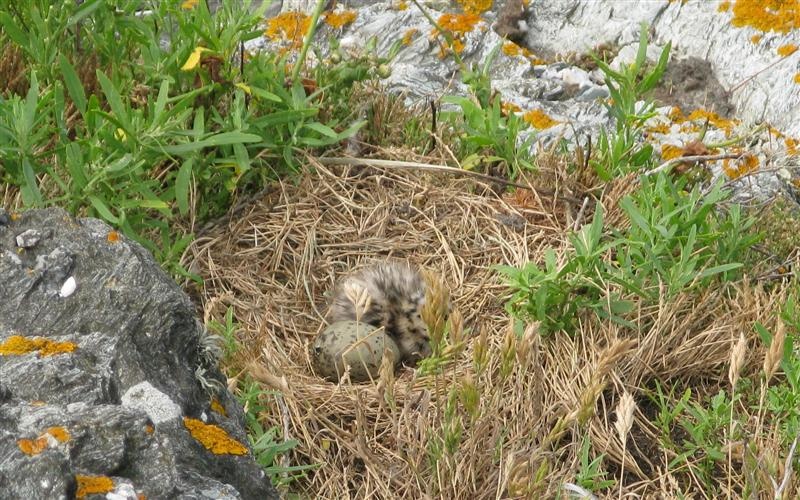 C'était probablement la période de couvaison et d'élevage des petits goélands. Nous verrons régulièrement les oiseaux couver, ou garder des petites boules en duvet tacheté.